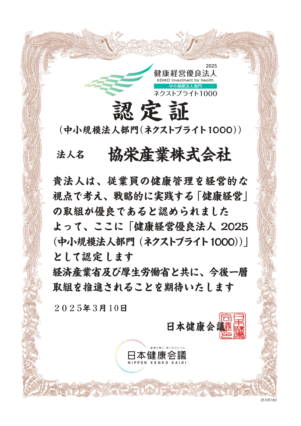 「従業員の健康管理を経営的な視点で考え、戦略的に取り組んでいる法人」として 、「健康経営優良法人」に2020年度から5年連続で認定されました。 今後も、社員の健康づくりと働きやすい職場環境の整備に取り組みます。